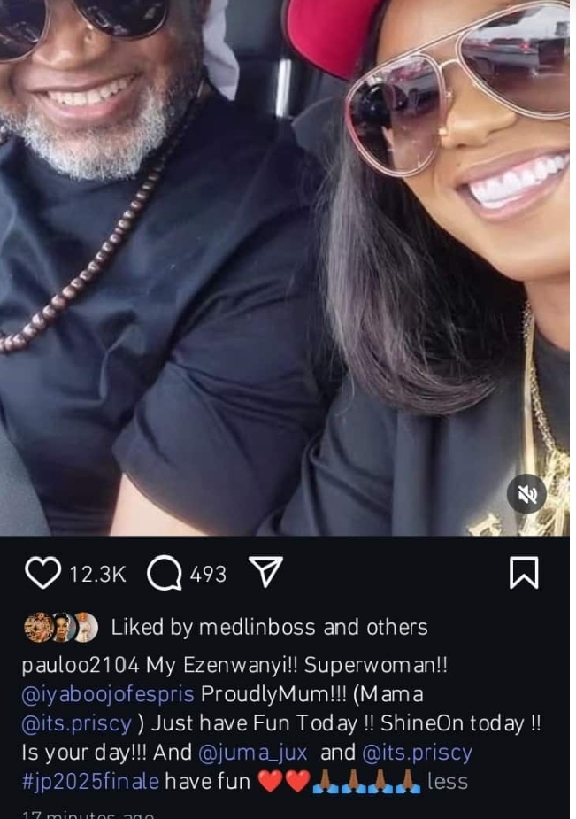“My Ezenwanyi!! Superwoman!! @iyaboojofespris ProudlyMum!!! (Mama @its.priscy ) Just have Fun Today !! ShineOn today !! Is your day!!! And @juma_jux and @its.priscy #jp2025finale have fun”.