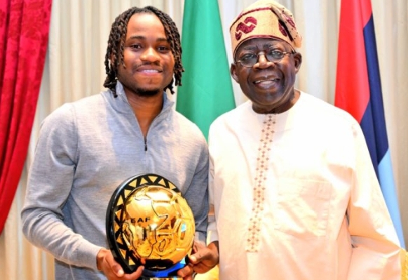 Africa Player of The Year, Ademola Lookman with President Bola Tinubu, during his visit to the President at his Lagos residence.